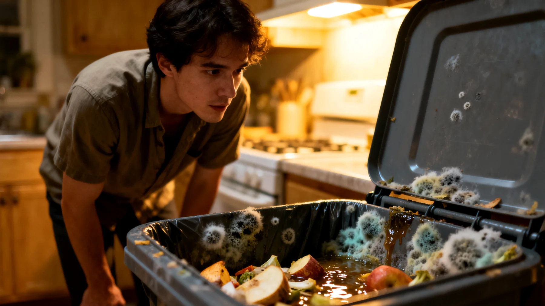 Ma il vero problema è quello invisibile. I contenitori trascurati diventano incubatori di microrganismi, ambienti ideali dove batteri e muffe trovano nutrimento nei residui organici. Questi microrganismi non rimangono confinati nel bidone: rilasciano nell’aria composti volatili, spore e sostanze che si diffondono nell’ambiente domestico.