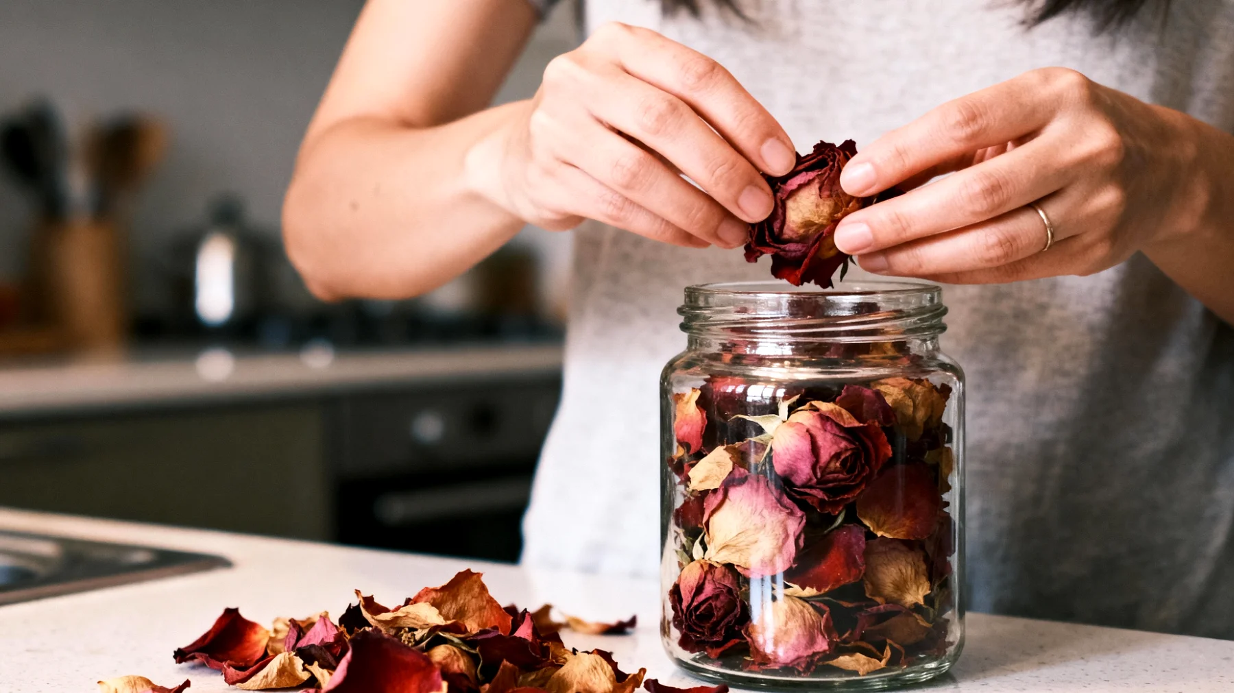 I petali ingialliti sul tavolo, i gambi ricurvi verso il basso, il profumo ormai svanito: le rose appassite sembrano aver compiuto il loro ciclo. Eppure, quello che molti considerano il momento di separarsi da questi fiori potrebbe essere solo l’inizio di un nuovo capitolo. Non si tratta semplicemente di nostalgia o di affetto per un regalo ricevuto, ma di una riflessione più ampia sul valore reale degli oggetti che attraversano le nostre case e sul loro potenziale nascosto.