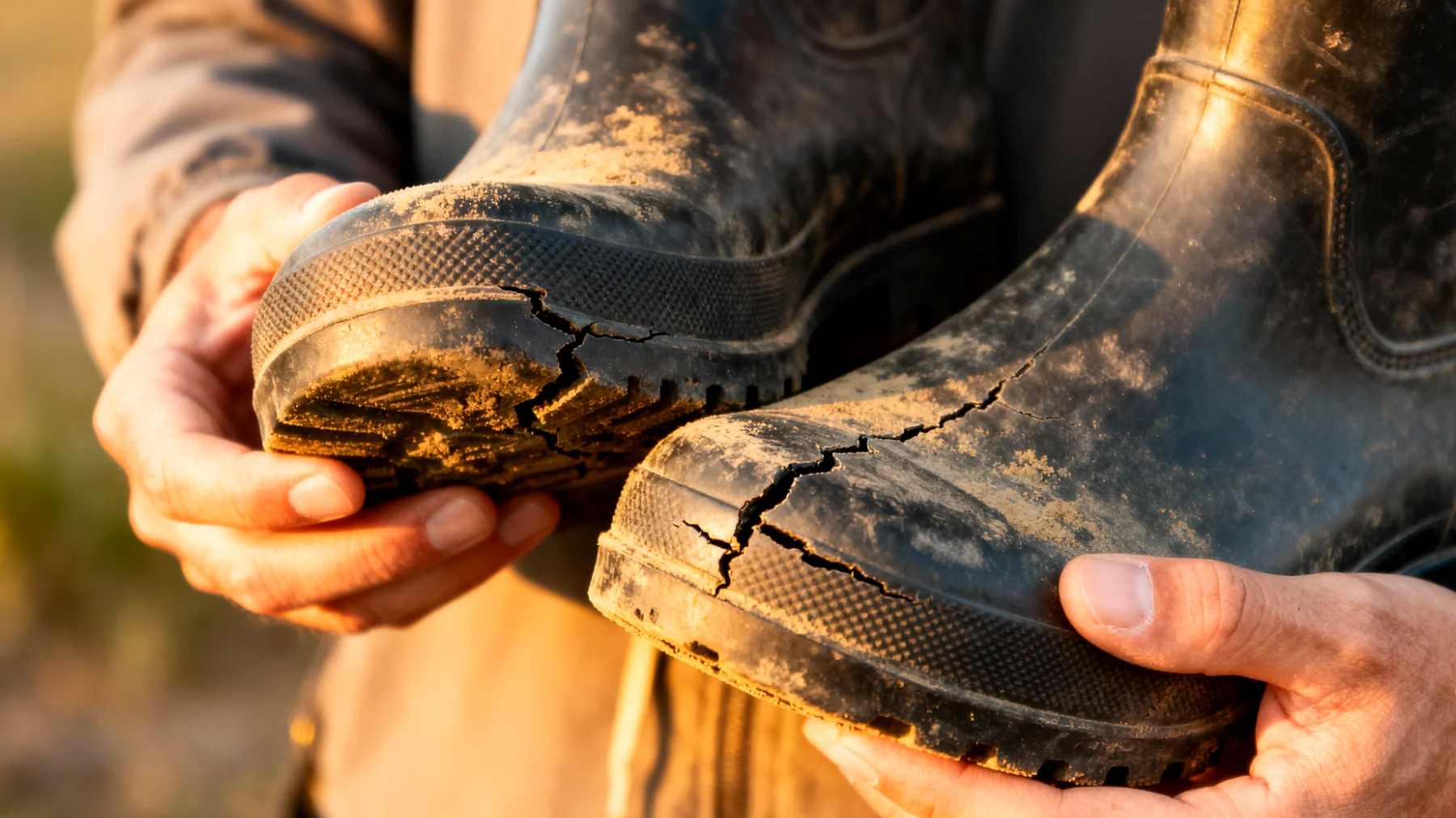 L’umidità interna persistente rappresenta un altro pericolo serio: l’ambiente chiuso e caldo dello stivale bagnato favorisce la formazione di batteri anaerobi e funghi, con risultati poco piacevoli dal punto di vista degli odori e del deterioramento del rivestimento interno. Infine, la mancata idratazione dei materiali sintetici è spesso sottovalutata. La superficie della gomma ha bisogno di essere mantenuta elastica. Se si asciuga oltre una certa soglia, si crepa. I plastificanti contenuti nei polimeri tendono a migrare in superficie e a evaporare nel tempo, rendendo il materiale progressivamente più rigido.