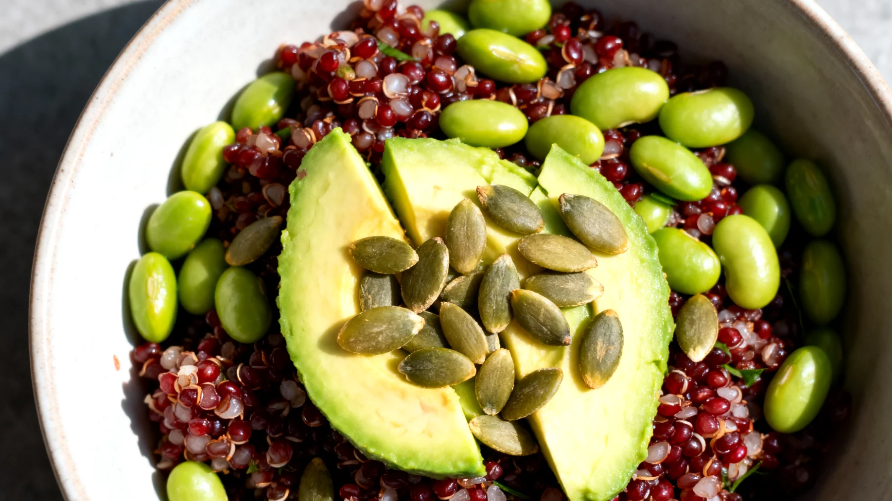 L’abbinamento tra quinoa ed edamame crea una sinergia proteica di notevole valore. La quinoa è uno dei pochi pseudocereali a contenere tutti e nove gli amminoacidi essenziali, motivo per cui viene descritta come fonte di proteine complete in ambito nutrizionale. Gli edamame, i giovani semi di soia, sono ricchi di proteine di elevata qualità e isoflavoni, composti con attività antiossidante. Per chi ha intolleranze alla soia, i ceci rappresentano un’alternativa valida, mantenendo un buon apporto proteico e aggiungendo ferro e zinco alla preparazione. Questo mix proteico vegetale sostiene la concentrazione e fornisce energia stabile per ore.